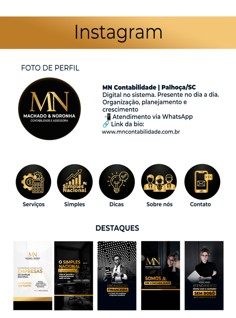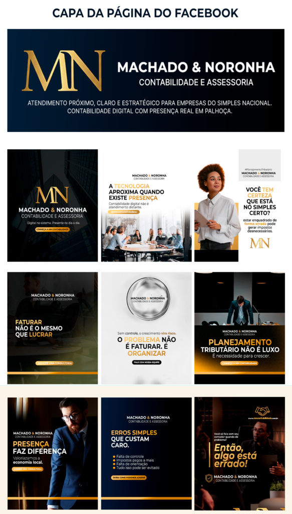 Pacote completo de 18 posts profissionais para fortalecer o @mncontabilidadesc com conteúdo de valor.